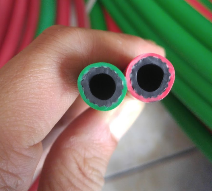 Dây hàn gió đá bao gồm 2 đường ống dẫn khí riêng biệt gắn chung vào với nhau với quy ước như sau: