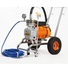 - Máy phun sơn GK 990 bao gồm: động cơ, giá đỡ, bánh xe,.. và phụ kiện đi kèm như vòi phun, ống xả, súng phun.