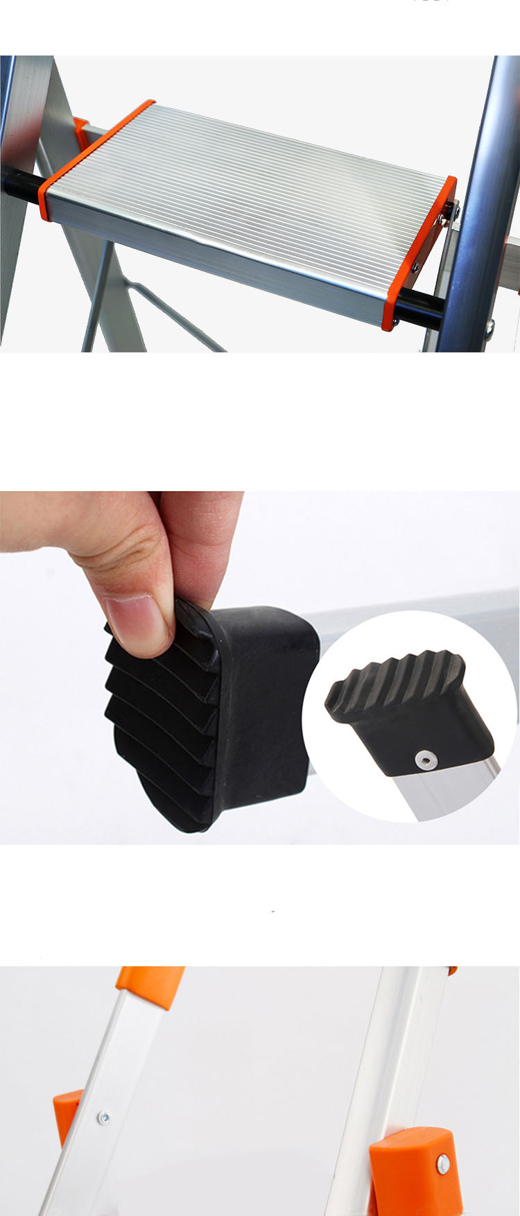 • Các nút bịt được chế tạo bằng nhựa, chân thang có nút nhựa, chống trượt, tạo cho thang có hình dáng đẹp hơn, an toàn cho người dùng.