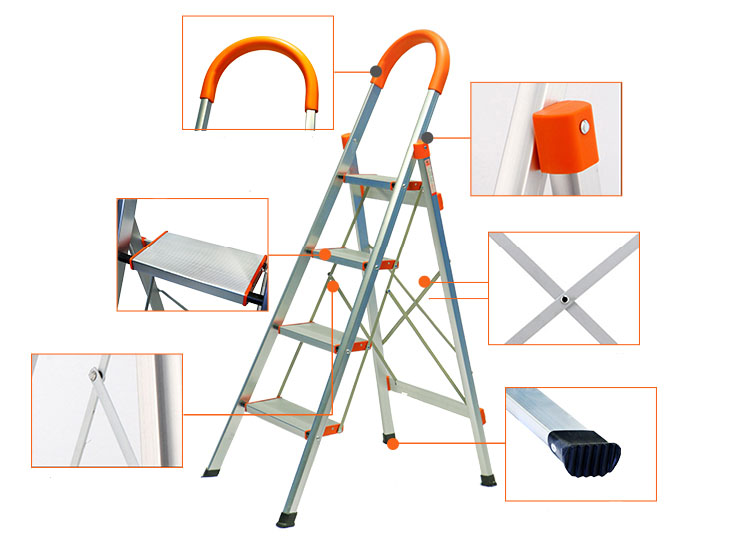 Thang nhôm ghế DIY TLN-04  thiết kế 4 bậc thang phù hợp với các công việc trong gia đình như cắt tỉa cây cảnh, lau cửa kính, …